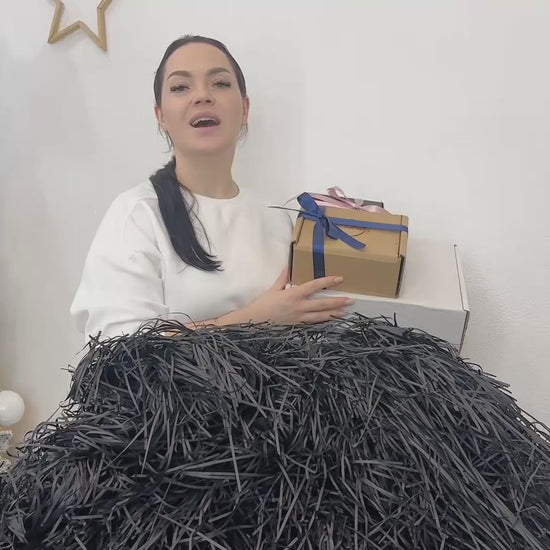 Each pack contains 500 grams of premium black shredded paper. Make your packaging stand out with a sustainable and elegant solution!